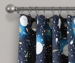 Universe Navy Room-Darkening Rod Pocket Curtain Panel Pair, (84″)