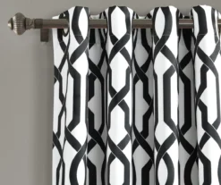 Edward Trellis Black Room-Darkening Grommet Curtain Panel Pair, (84″)