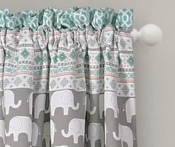 Elephant Stripe Turquoise & Pink Room-Darkening Rod Pocket Curtain Panel Pair, (84″)