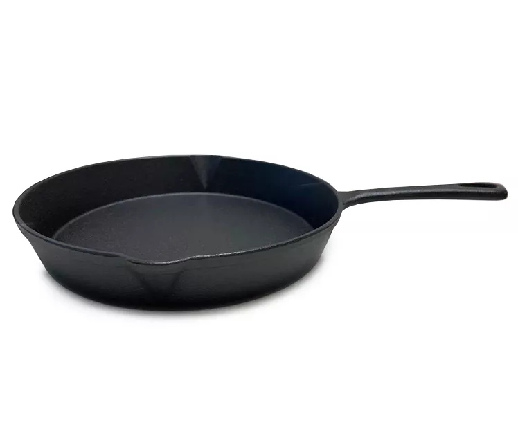 Cook your favorite foods in this Real Living cast iron frying pan. This classic kitchen tool is a must-have for anyone who enjoys cooking. Its able to be used on all cooking surfaces such as an oven, under a broiler or on the barbecue.