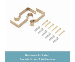 - Includes one telescoping curtain rod with finials, two brackets, one center support, screws, drywall anchors and instructions