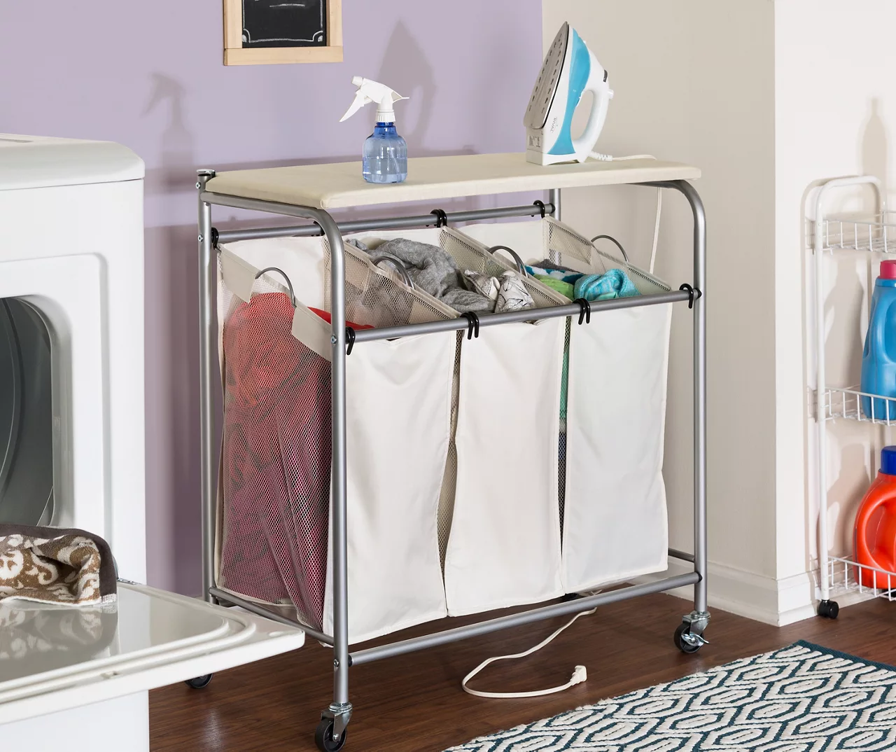 Make the most of your laundry space or other small spaces with this two-in-one sorter from Honey-Can-Do that’s built into an ironing table. The ironing table lifts open for easy access and the frame sits on rolling wheels so you can easily move from room to room.