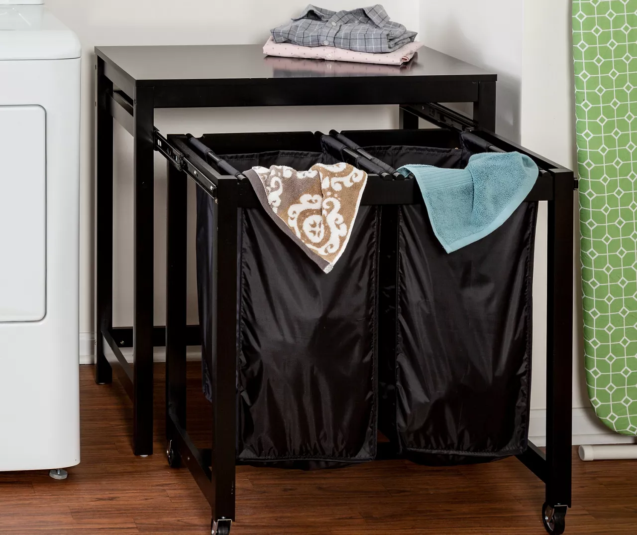 Make the most of your laundry space or other small spaces with this two-in-one sorter from Honey-Can-Do that’s built into a sorting table. The hamper baskets slide out for easy access and rolling wheels provide effortless movement from room to room.