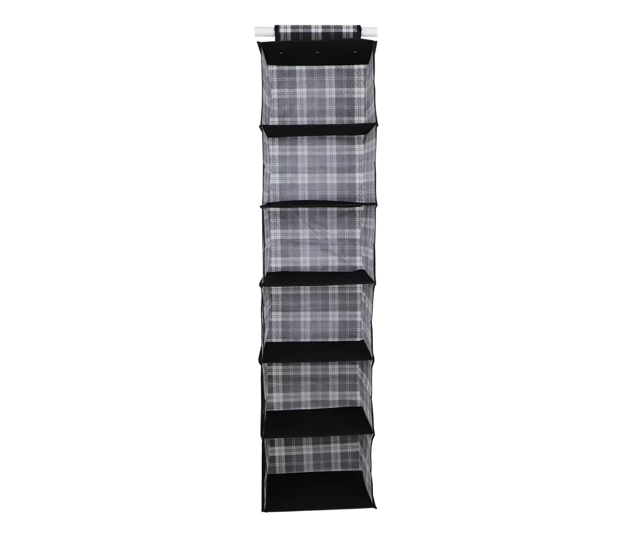 Declutter your closet and maximize your space with the help of this hanging closet organizer from Home Basics. It features sturdy metal hooks that allow you to hang it on most standard closet rods. Simply unfold the organizer to reveal vertically arranged cubbies fit for organizing your entire wardrobe. Use each compartment to stow away folded clothes, accessories or shoes. Constructed from breathable non-woven material, the organizer is gentle on even the most delicate garments. The organizer also folds down into a flat square, allowing you to tuck it away in a drawer or under a bed when you’re done using it.