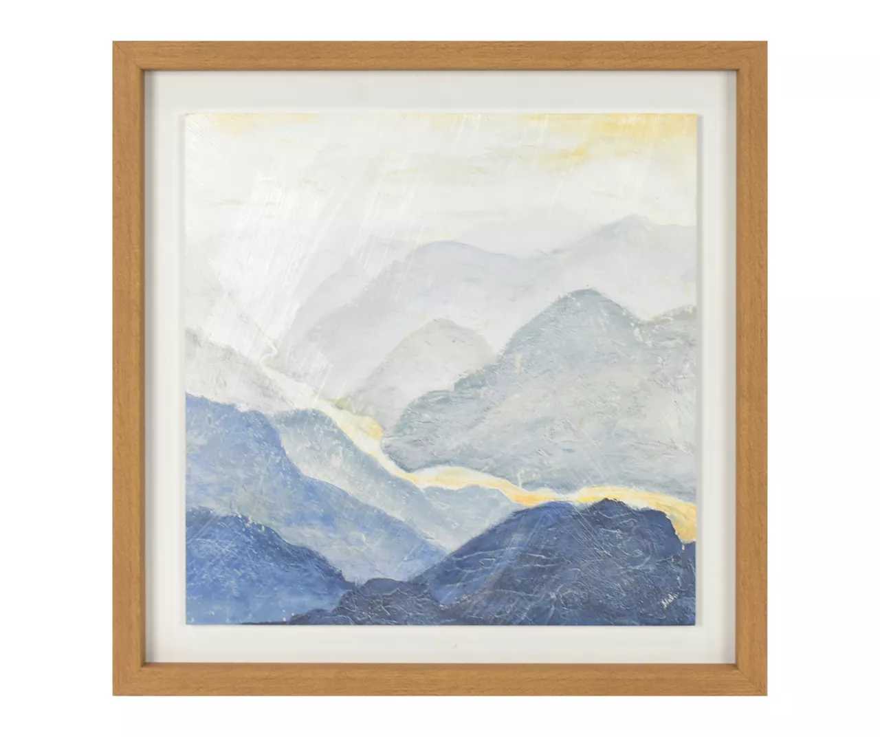 - Window mat design of blue mountains fading into the distance