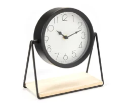 Bohemian Farmhouse Black Metal Clock With Wood Base