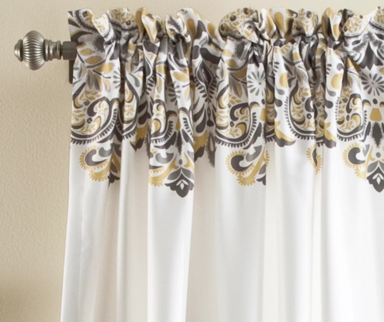 - Intricate paisley print features shades of yellow and gray