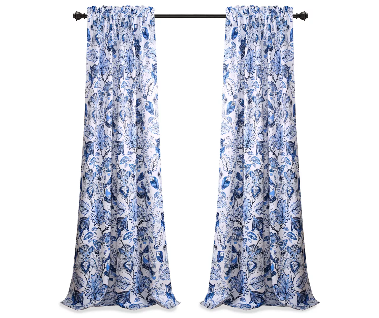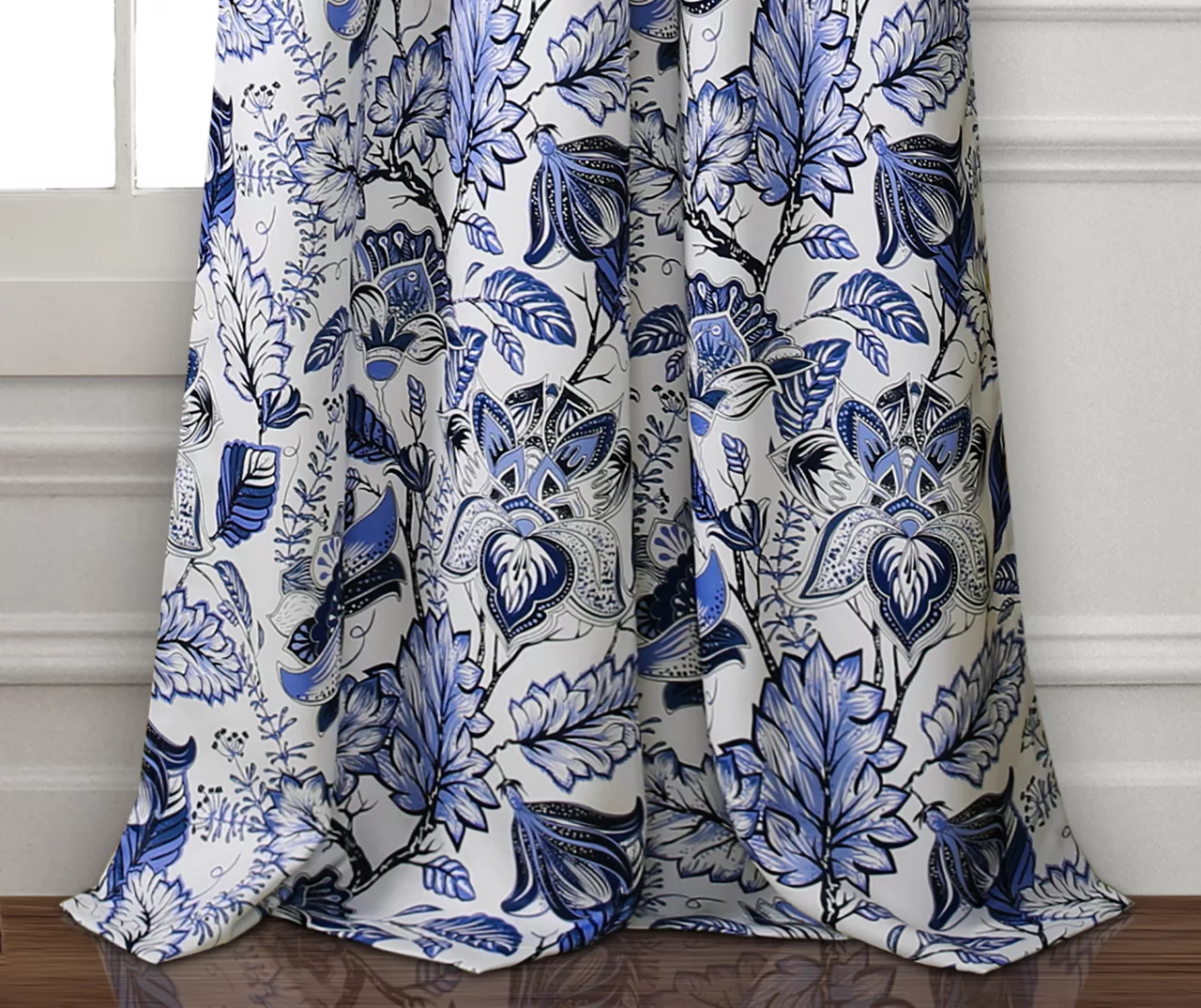 - Beautiful Jacobean-inspired floral print in shades of blue