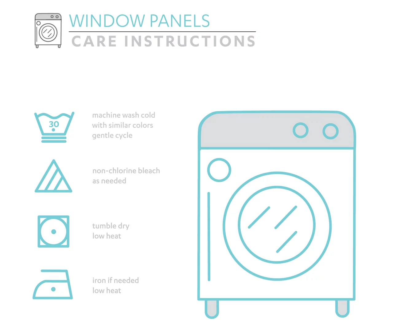 - Machine wash cold, gentle cycle. Use only non-chlorine bleach when needed. Tumble dry low. Light iron if needed