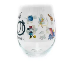 Serve your favorite vintages with a dose of Disney magic with these lovely stemless wineglasses. The allover design features iconic Disney characters in celebration of their 100th anniversary, making it a great gift for fans and collectors alike.