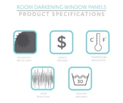 - Room-darkening curtain panels help filter out sunlight and provide privacy