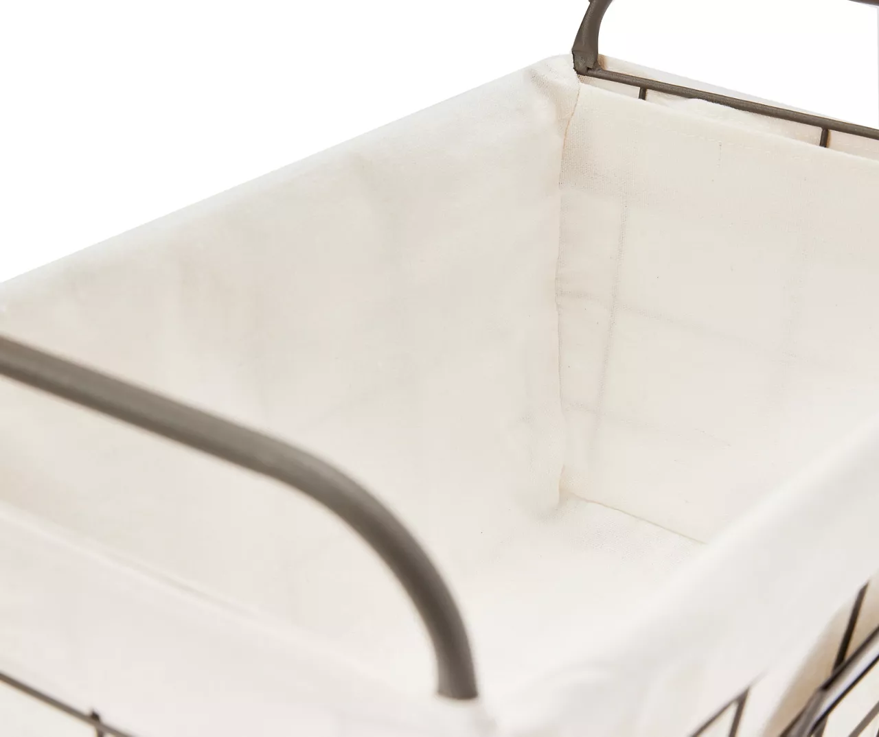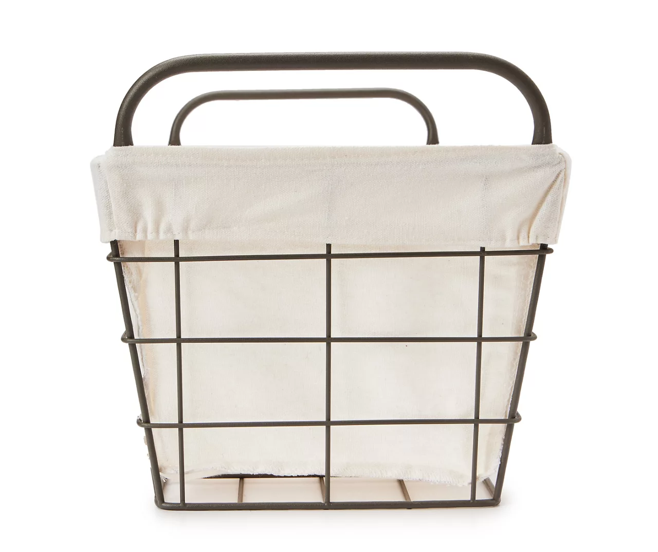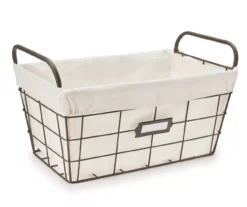 Organize your surroundings with the farmhouse flair of this wire metal basket from Home Essentials. The simple design is fitted with a removable fabric liner that can be washed. Side handles offer carrying convenience and a label holder on the front makes it easy to mark and find your goods quickly.