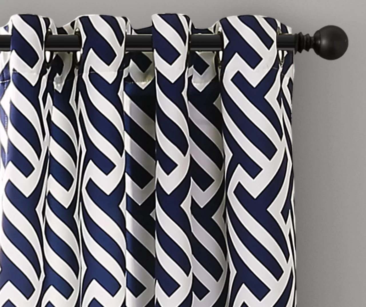 Giovana Navy Geometric Room-Darkening Grommet Curtain Panel Pair, (84″)