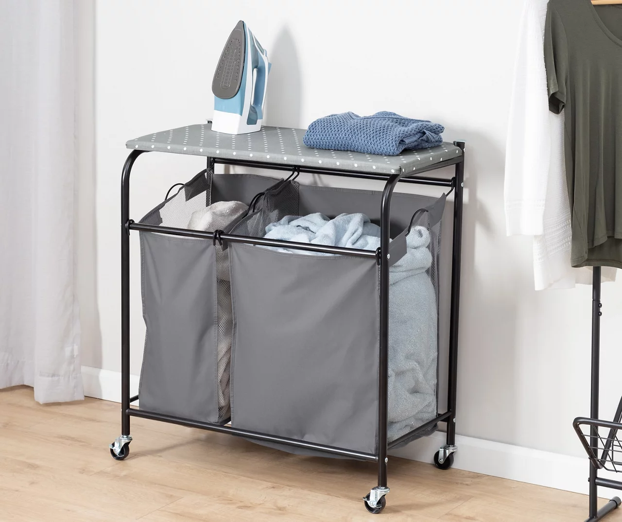 Make the most of your laundry space or other small spaces with this two-in-one sorter from Honey-Can-Do that’s built into an ironing table. The bags are removable for convenience and the frame sits on rolling wheels so you can easily move from room to room.