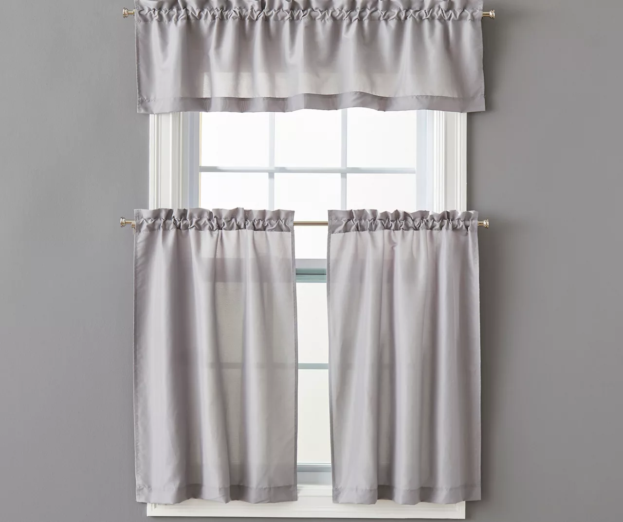 - Includes 1 – valance and 2 – tier curtains