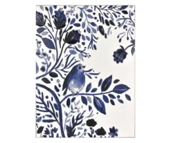 This wall art brings adorable artistry to your home. The blue ink-like illustration depicts a bird resting among leaves, branches and flowers on a white background.