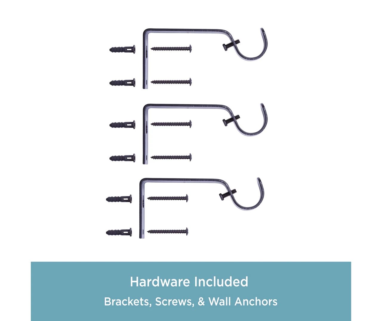- Includes 1 telescoping curtain rod with finials, 2 brackets, screws, drywall anchors and installation instructions