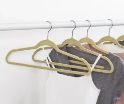 Stock up your closet with these lovely textured hangers from Honey-Can-Do. Each hook swivels 360° for optimal versatility, and the plastic frame is coated in a velvety texture that helps to keep garments from slipping. The slim profile also allows for more storage so you can make the most of your closet space. Grooves on each side offer a spot for strappy items to rest to minimize slipping and falling.