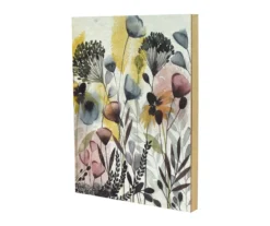 Curate a look for your home displaying this paper art décor. Watercolor wild flowers bloom across the piece in subtle red, blue, green, yellow and black colors.