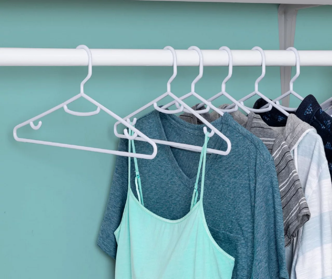 Stock up your closet with these sturdy plastic hangers from Honey-Can-Do. The frame features inner hooks on each side for storing strappy items, and a loop under the rod hook offers a spot for your ties, belts and other accessories.