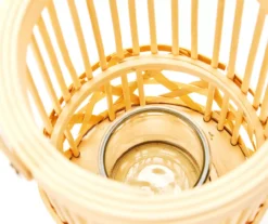This lantern brings style and illumination to your home. The open weave look is made from rattan and wood as a glass holder in the center displays your favorite LED candle. It’s a charming addition to a mantel, table or shelf.
